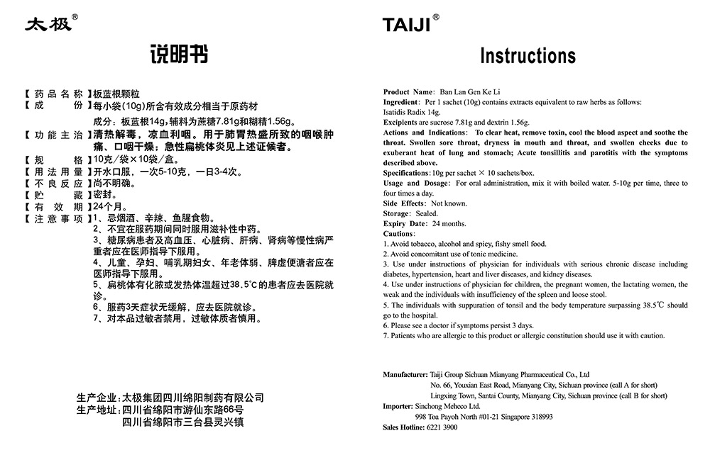 功能主治:清热解毒,凉血利咽。用于肺胃热盛所致的咽喉肿痛、口咽干燥;急性扁桃体炎见上述证候者。