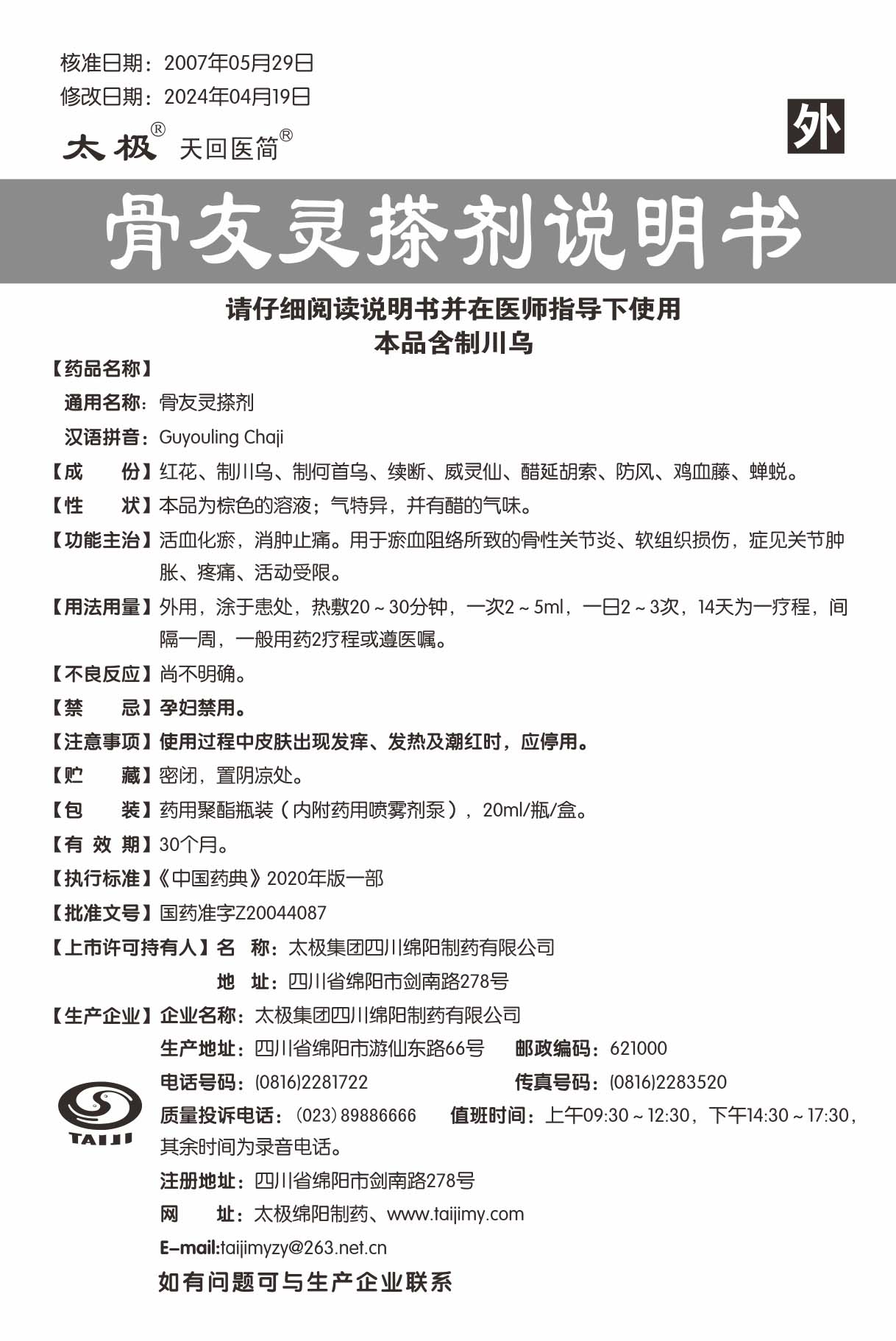 功能主治:活血化瘀,消肿止痛。用于瘀血阻络所致的骨性关节炎、软组织损伤,症见关节肿胀、疼痛、活动受限。